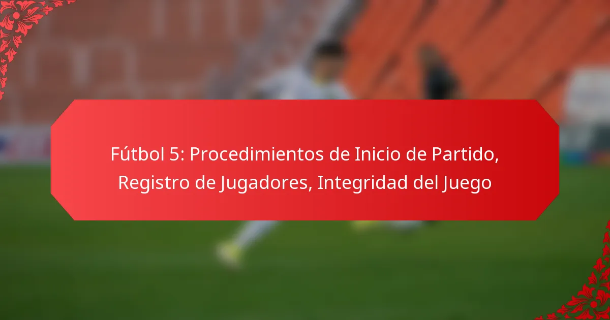 Los procedimientos de inicio de partido en el fútbol 5-a-side implican varios pasos clave para asegurar un inicio fluido. Estos incluyen rituales previos al partido, reglas de inicio y las responsabilidades del árbitro, todos los cuales contribuyen a mantener la integridad del juego y la preparación de los jugadores.